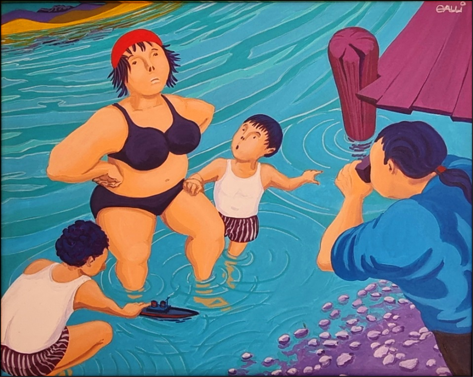 GALLI STEFANO Falconara Marittima 1950 "Buona razza" Acrilici su tela cm 50x40 del 2001. Firmato sul fronte in alto a destra. Sul retro titolo, firma ed anno. Archiviazione su foto.