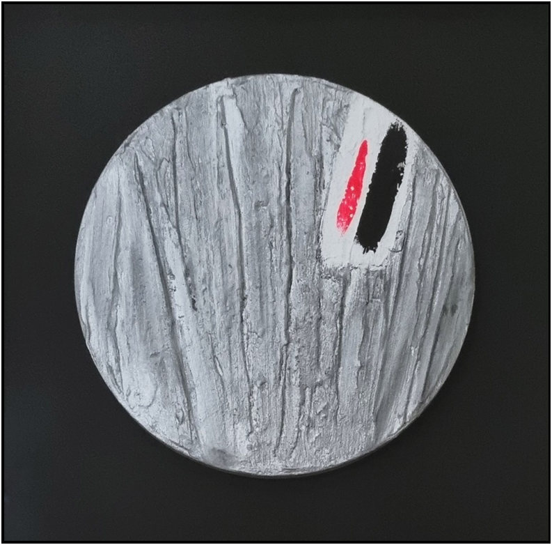 FINZI ENNIO Venezia 1931 "Il verso del colore" Tecnica mista su legno cm 43 di diametro, del 1993. Sul retro firmato e datato. Autentica su foto a cura dell'artista.