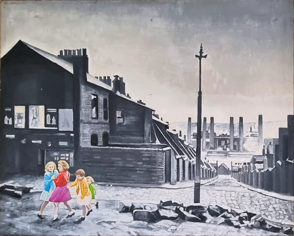 MONTESANO GIAN MARCO Torino 1949 "Nebel's Kinder" Olio su tela cm 80x100, del 1989. Sul retro data, titolo e firma.