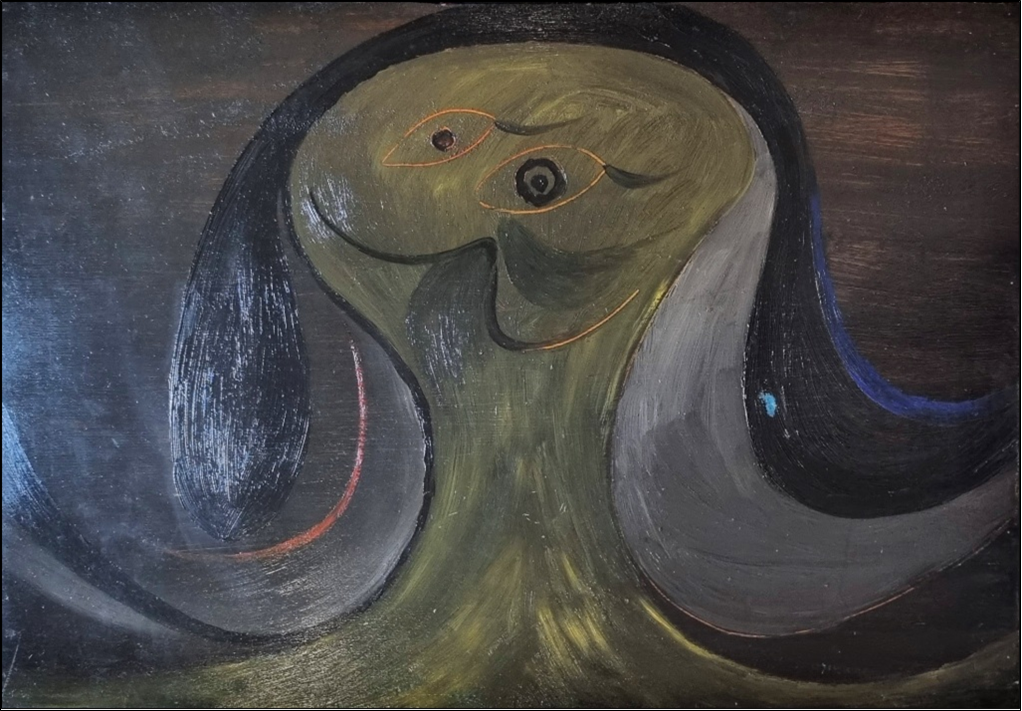 DOVA GIANNI Roma 1925 - Pisa 1991 "Composizione" Olio su tavola cm 66x45 del 1947. Sul retro etichetta dell'archivio e di altra galleria. Opera pubblicata sul catalogo "Dova" Prearo Editore. Archivio su foto a cura dell'Archivio Gianni Dova.