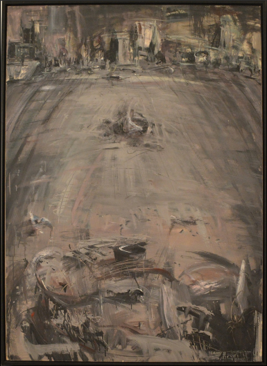 PAPETTI ALESSANDRO Milano 1958 "Interno" Tecnica mista su cartone intelato cm 100x140, del 1993. Opera firmata sul fronte in basso a destra. Sul retro timbro "Italian Factory". Autentica ed archiviazione su fotografia.