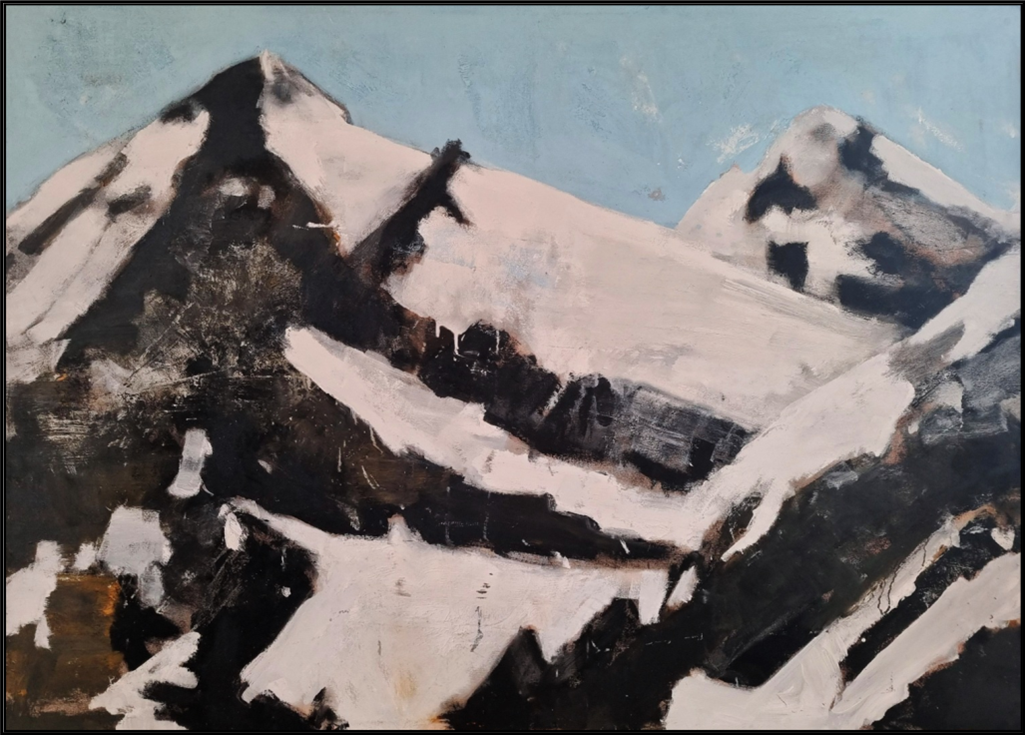 FRANGI GIOVANNI Milano 1959 "Monte Moro" Olio su tela cm 180x130 del 2003. Sul retro firmato, intitolato e datato. Autentica su foto a cura dell'artista e foto del maestro con l'opera.