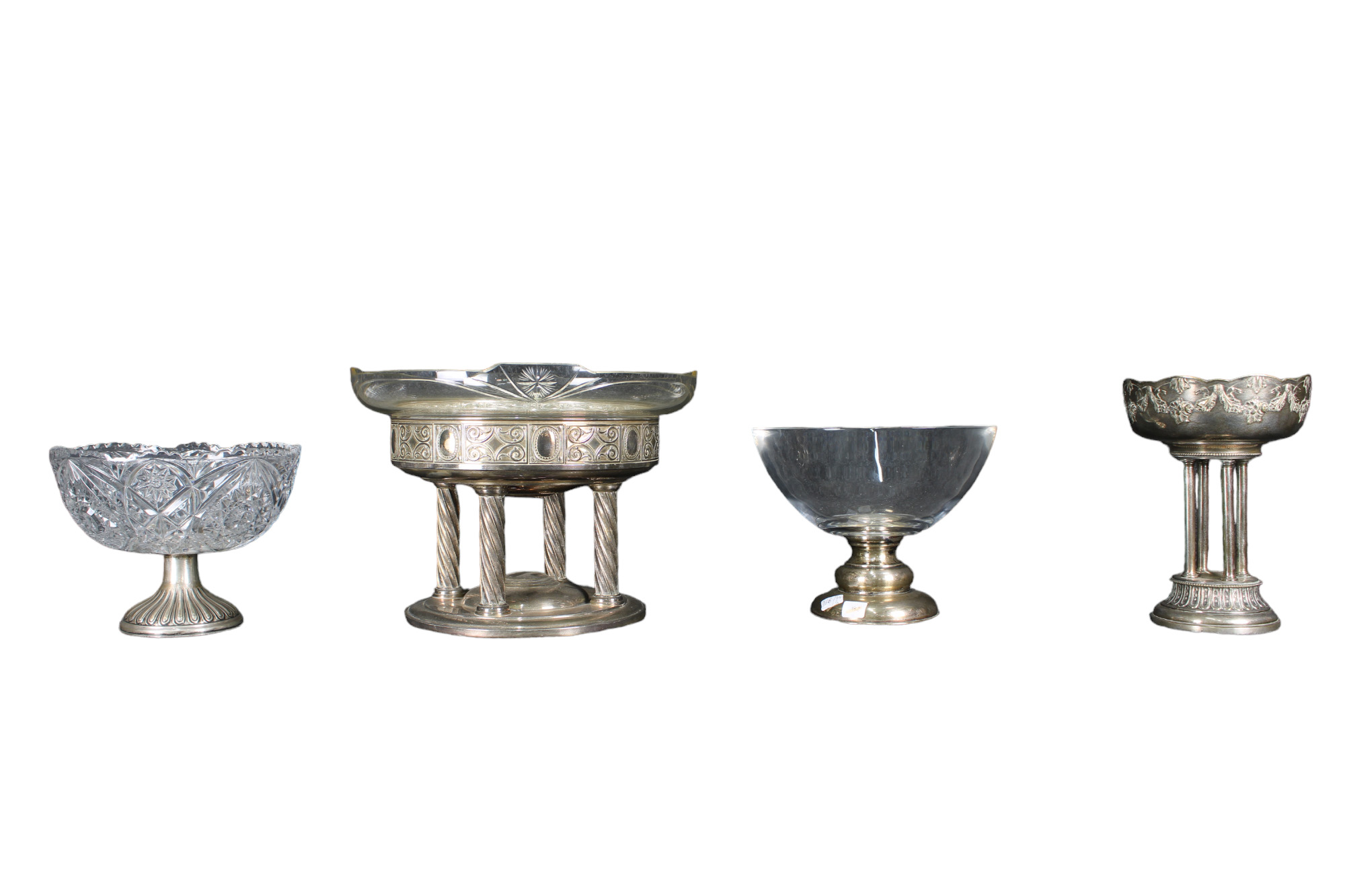 LOTTO COMPOSTO DA 4 ALZATE in metallo e vetro di cui una in argento Italia XX secolo misure varie