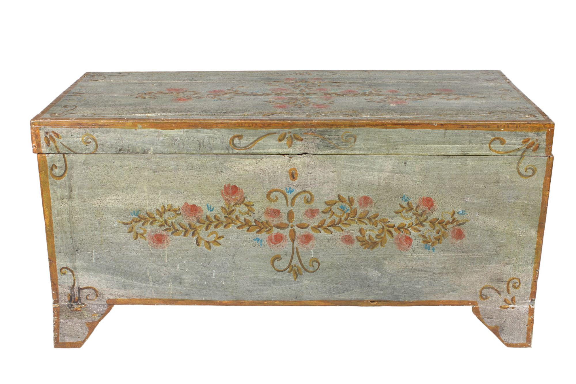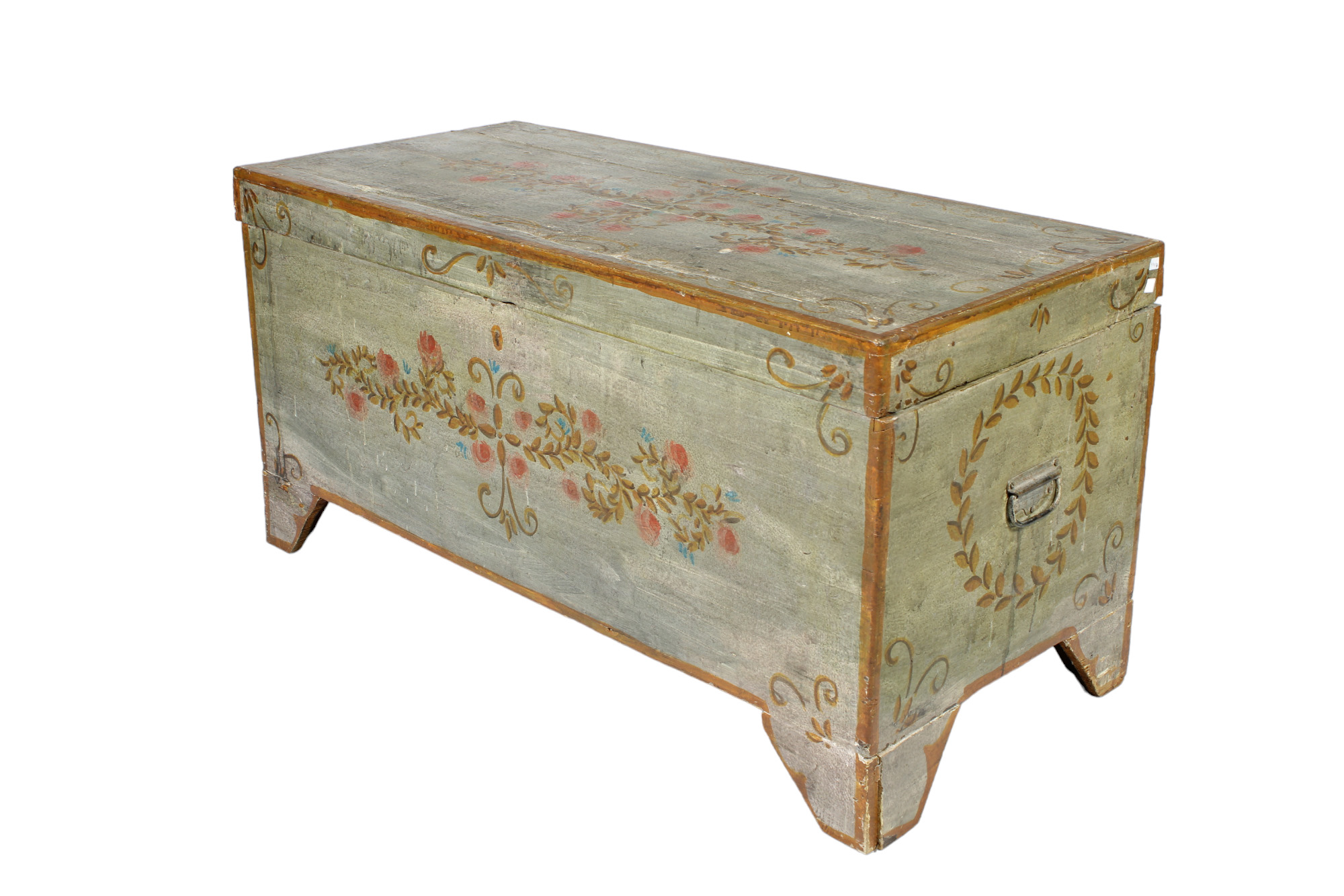 CASSAPANCA DA VIAGGIO in legno laccato e dipinto a motivi floreali Sicilia XIX secolo h cm 60 x 120 x 54