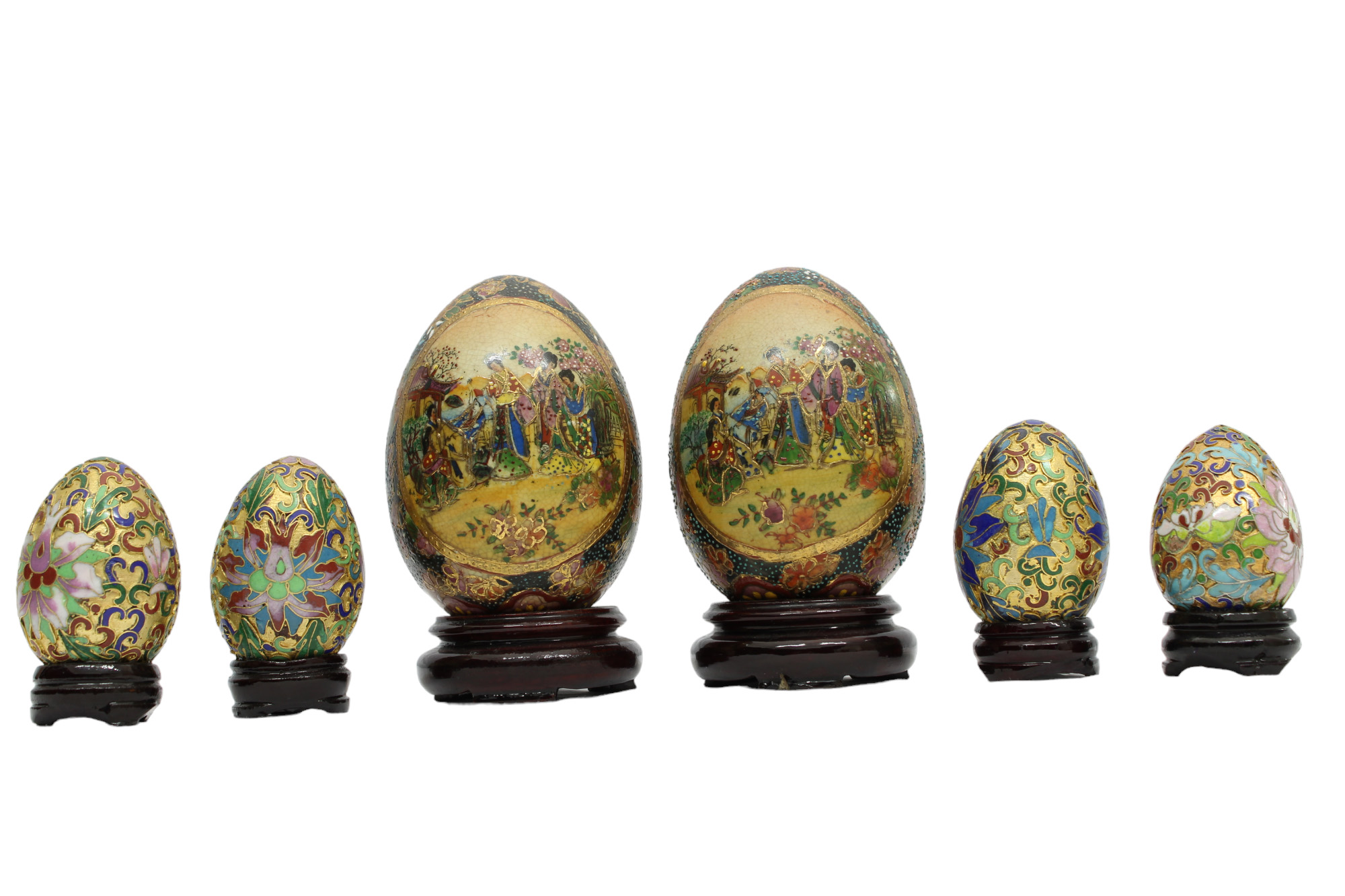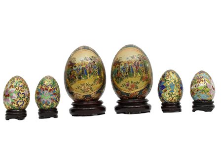 COLLEZIONE DI 6 UOVA di cui 2 in porcellana SATSUMA e 4 in cloisonne manifattura orientale XX secolo misure varie