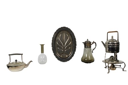 LOTTO DI 5 OGGETTI in metallo e vetro Inghilterra XX secolo misure varie