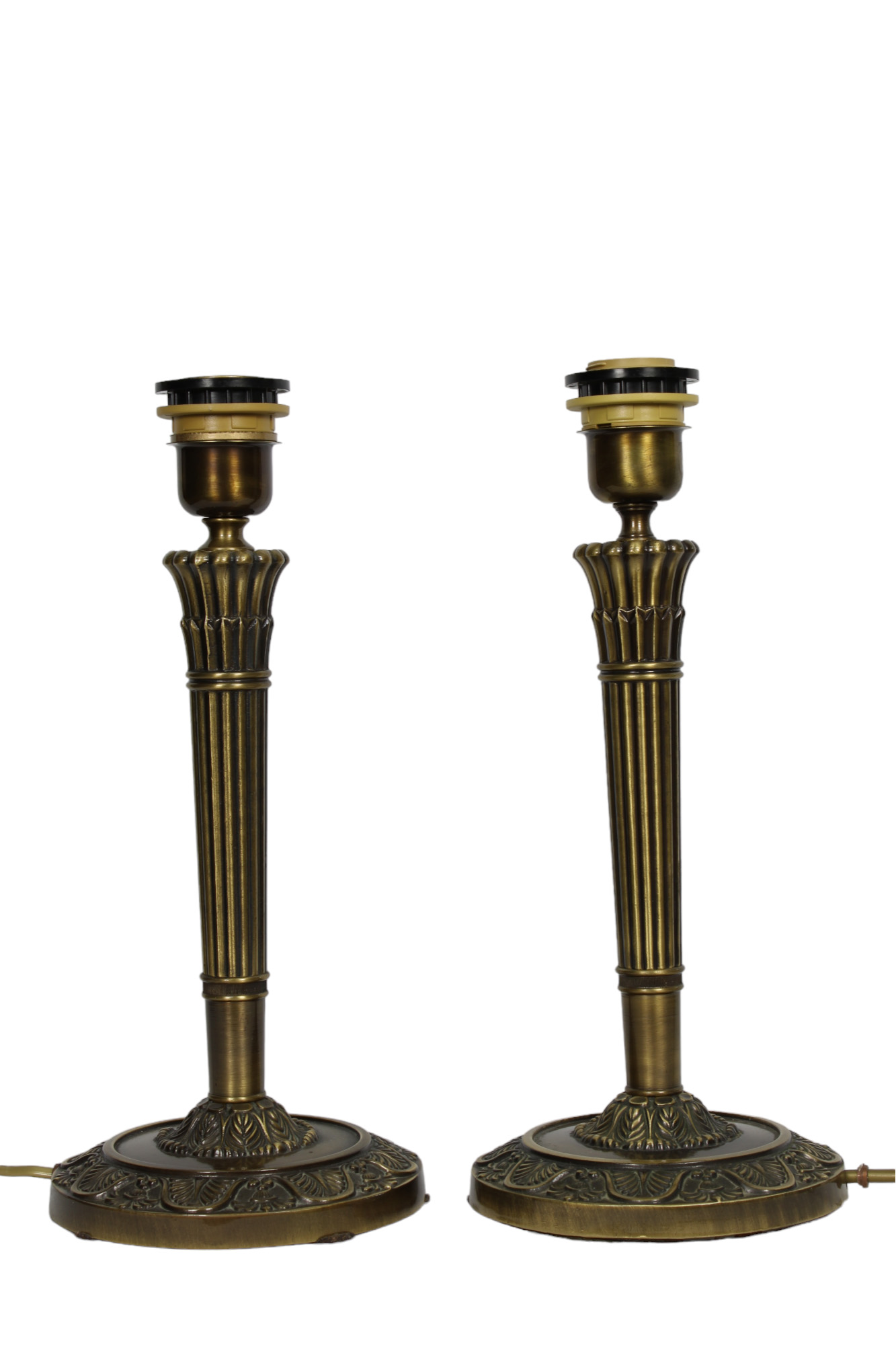 COPPIA CANDELIERI in metallo bronzato e cesellato montati a lampada Sicilia XX secolo h cm 36,5 x 16,5