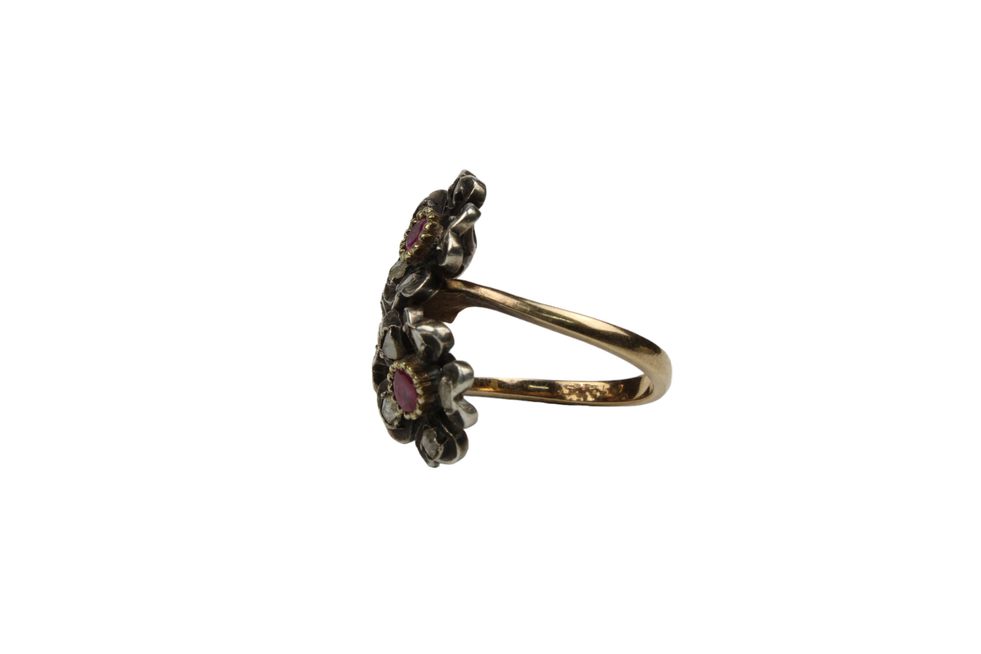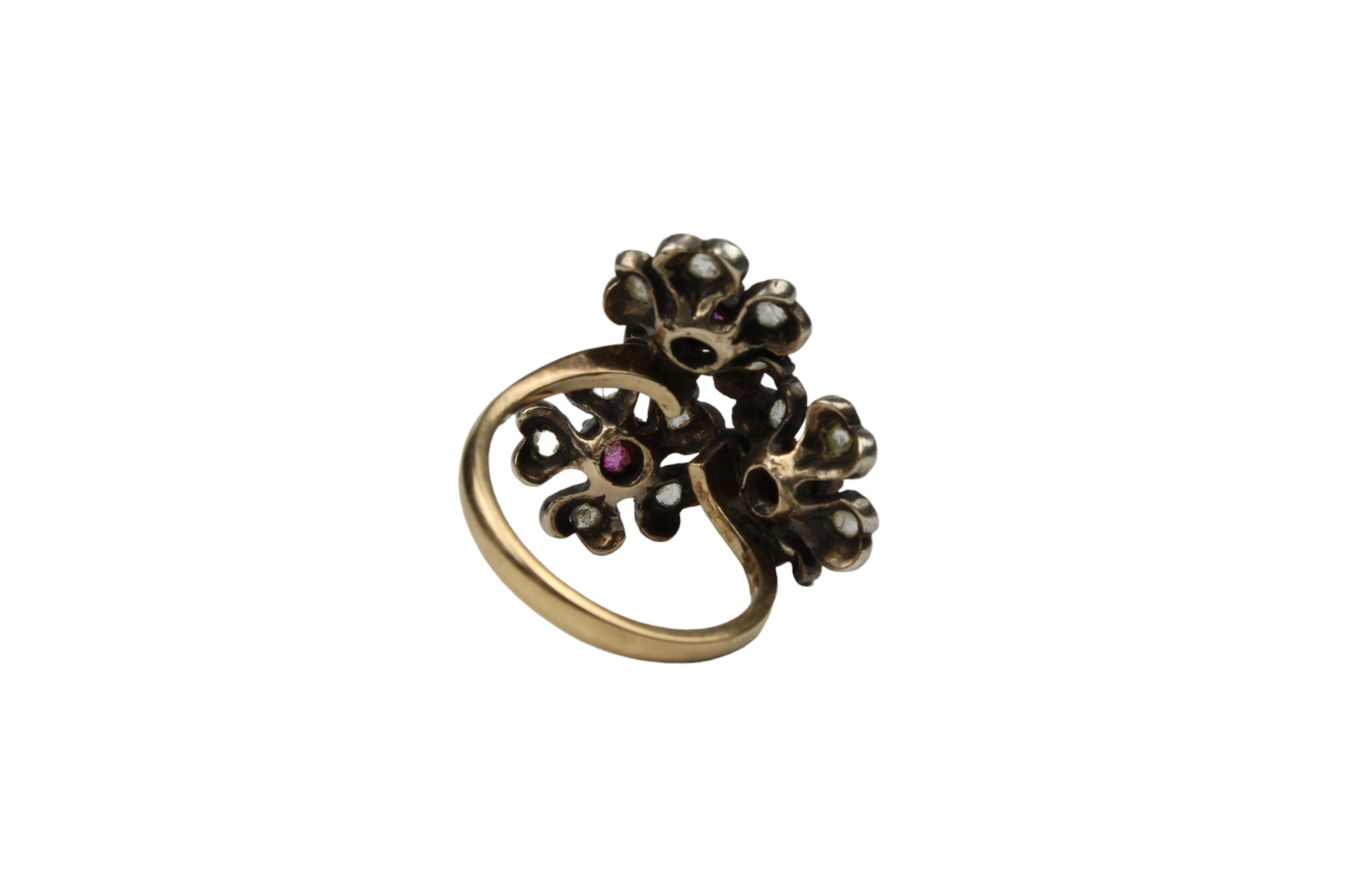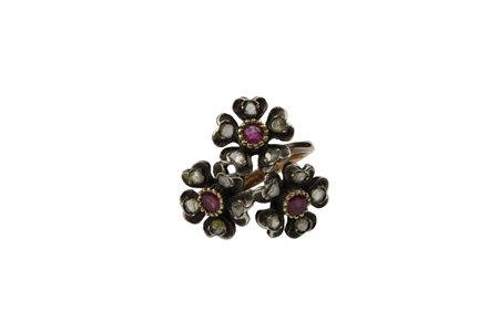 ANELLO in oro a basso titolo formato da 3 rosette a scaglie di pietre pregiate Italia primi 900