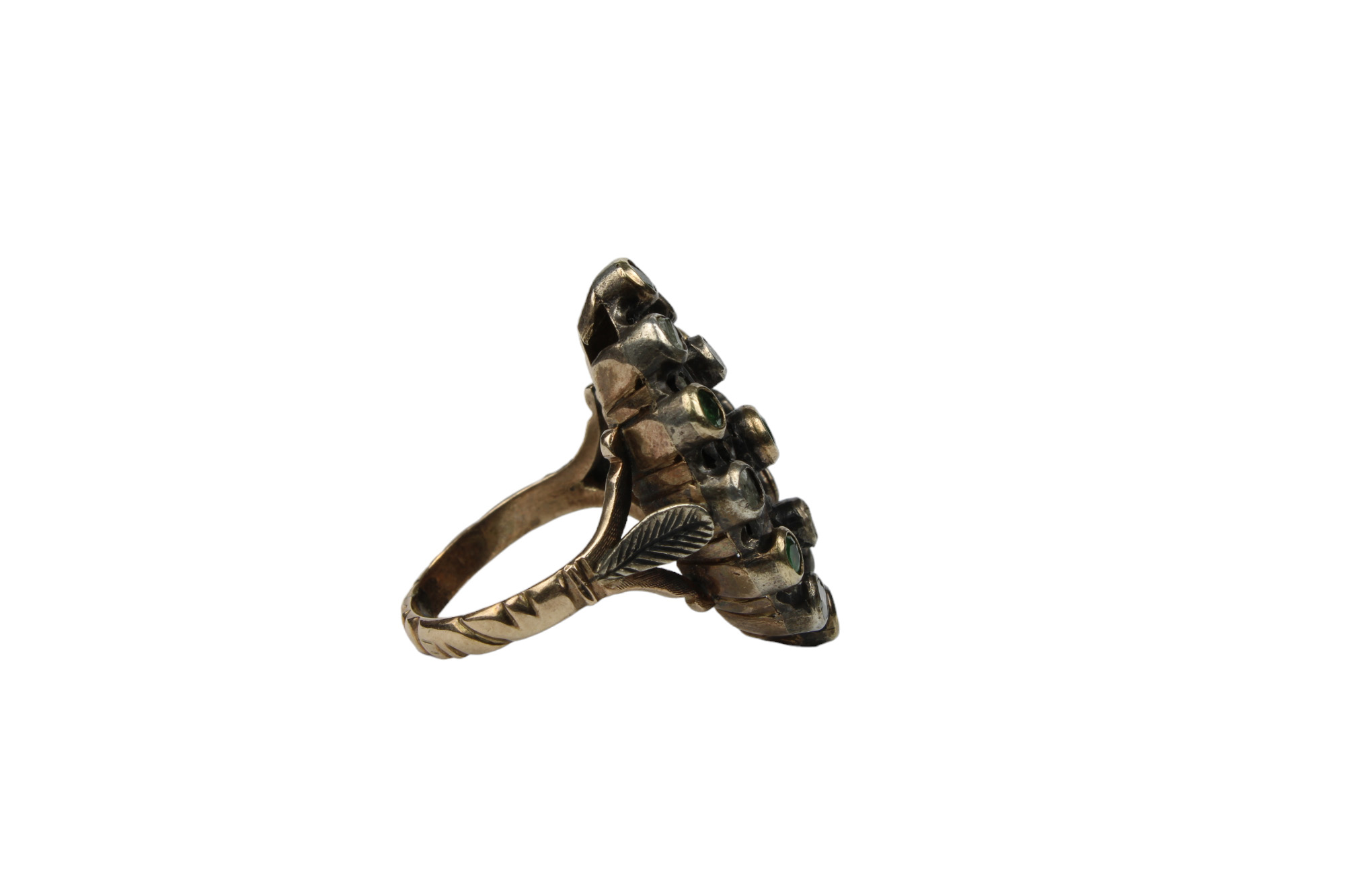 ANELLO A SPOLETTA in oro a basso titolo con scaglie di pietre pregiate Italia primi 900