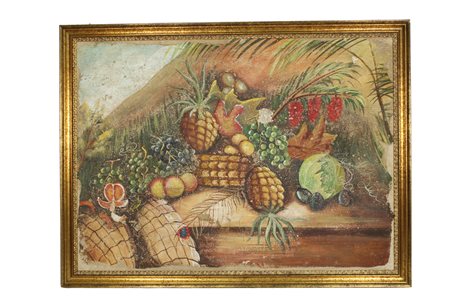 TECNICA MISTA SU TELA raffigurante natura morta con frutta scuola italiana XX secolo h cm 92 x 128