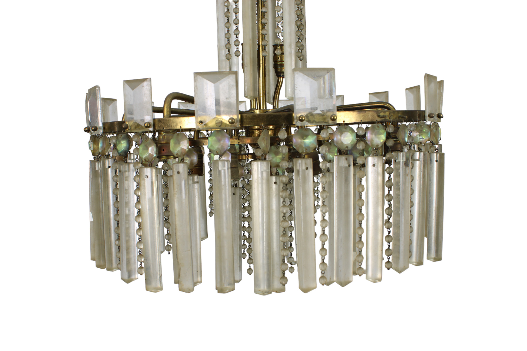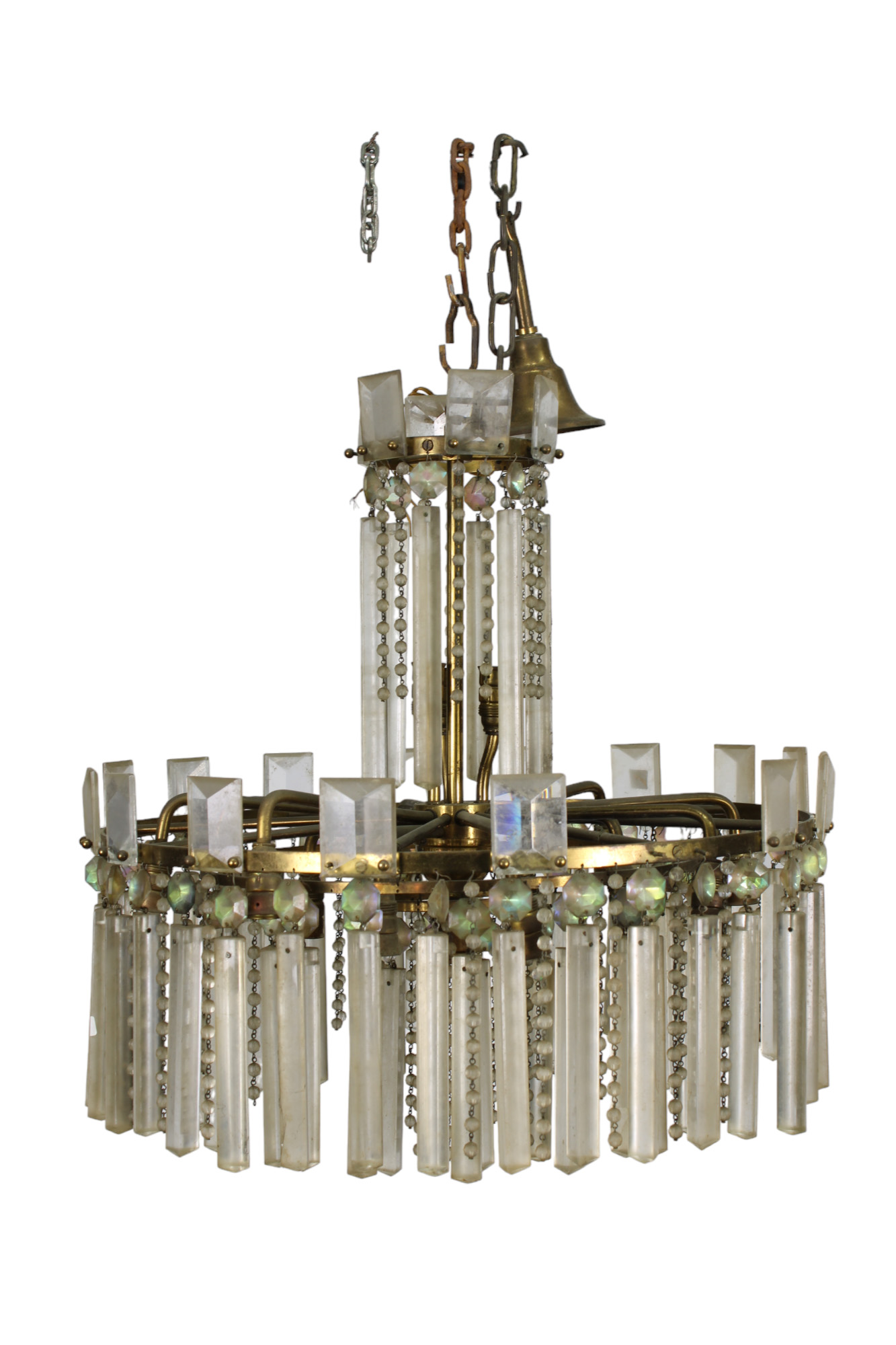 CURIOSO LAMPADARIO in metallo e vetro ad una sola luce vintage italiano h cm 80 x 56