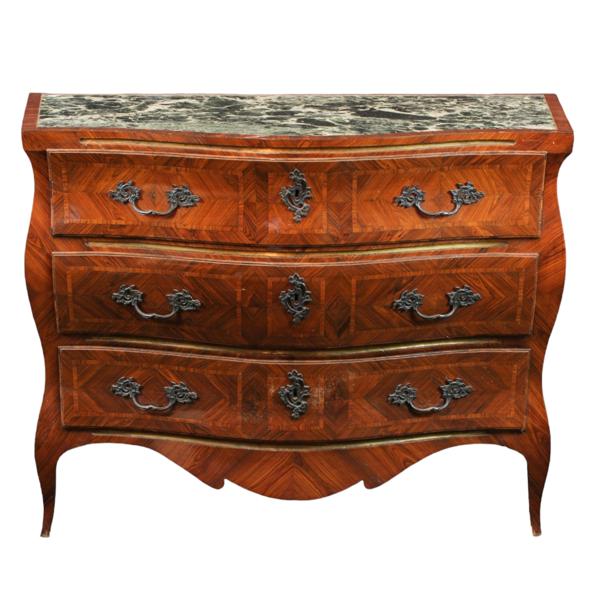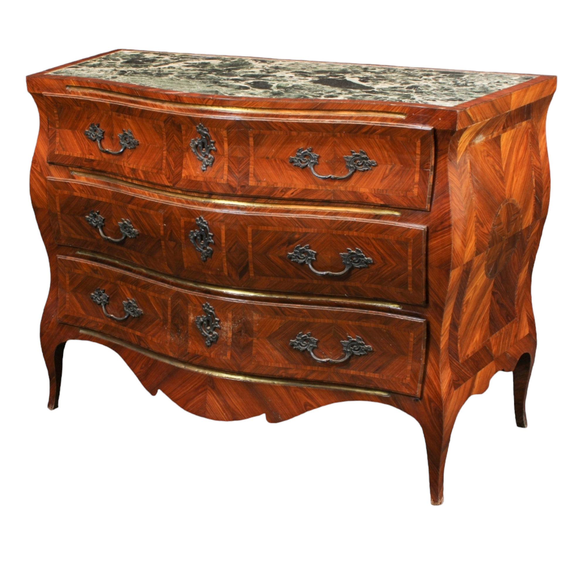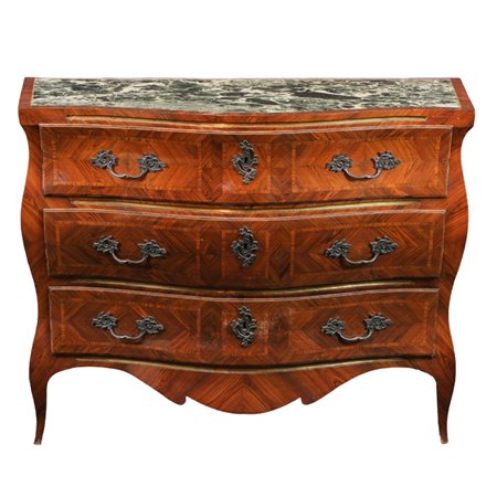 CASSETTONE A 3 CASSETTI in ebano viola e applicazioni in bronzo, piano in marmo verde delle Alpi di gusto settecentesco maestranze siciliane XIX / XX secolo h cm 95 x 131 x 63