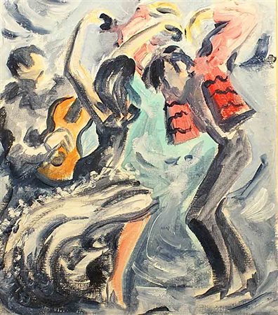 Anonimo del XX secolo, "Danzatori di flamenco", olio su cartone telato, cm....