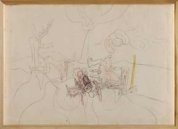 Roberto Matta "L'Hane evvive la France" 1968 tecnica mista su carta intelata cm