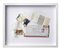 cassetta con elementi di mail art: busta affrancata, piccoli collage e cartiglio