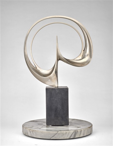 Carmelo Cappello "Interruzione circolare sferica" 1974 bronzo su base in legno e