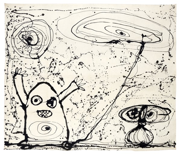 Enrico Baj "Ubu Enchainé" 1983 smalto su tela cm 196x232 Firmato in basso a dest