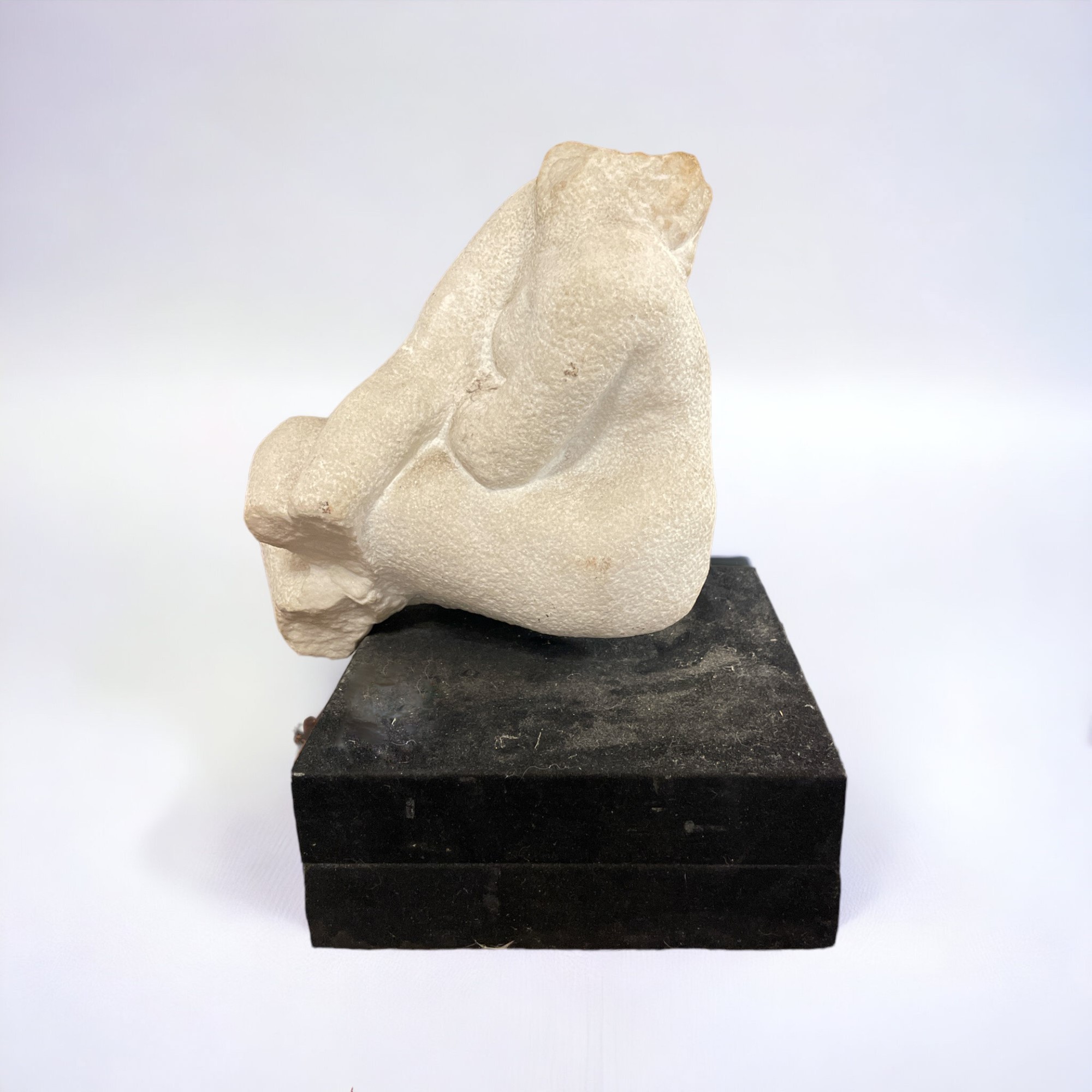 in marmo bianco, su basamento in legno ricoperto di feltro nero.