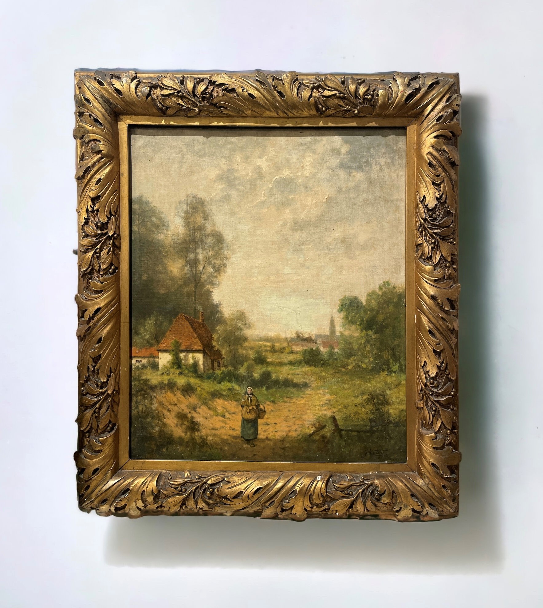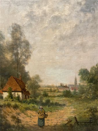 Guillaume Lauters (XIX - XX secolo) Paesaggio campestre con figura Fine del XIX secolo olio su tela cm 58 x 48