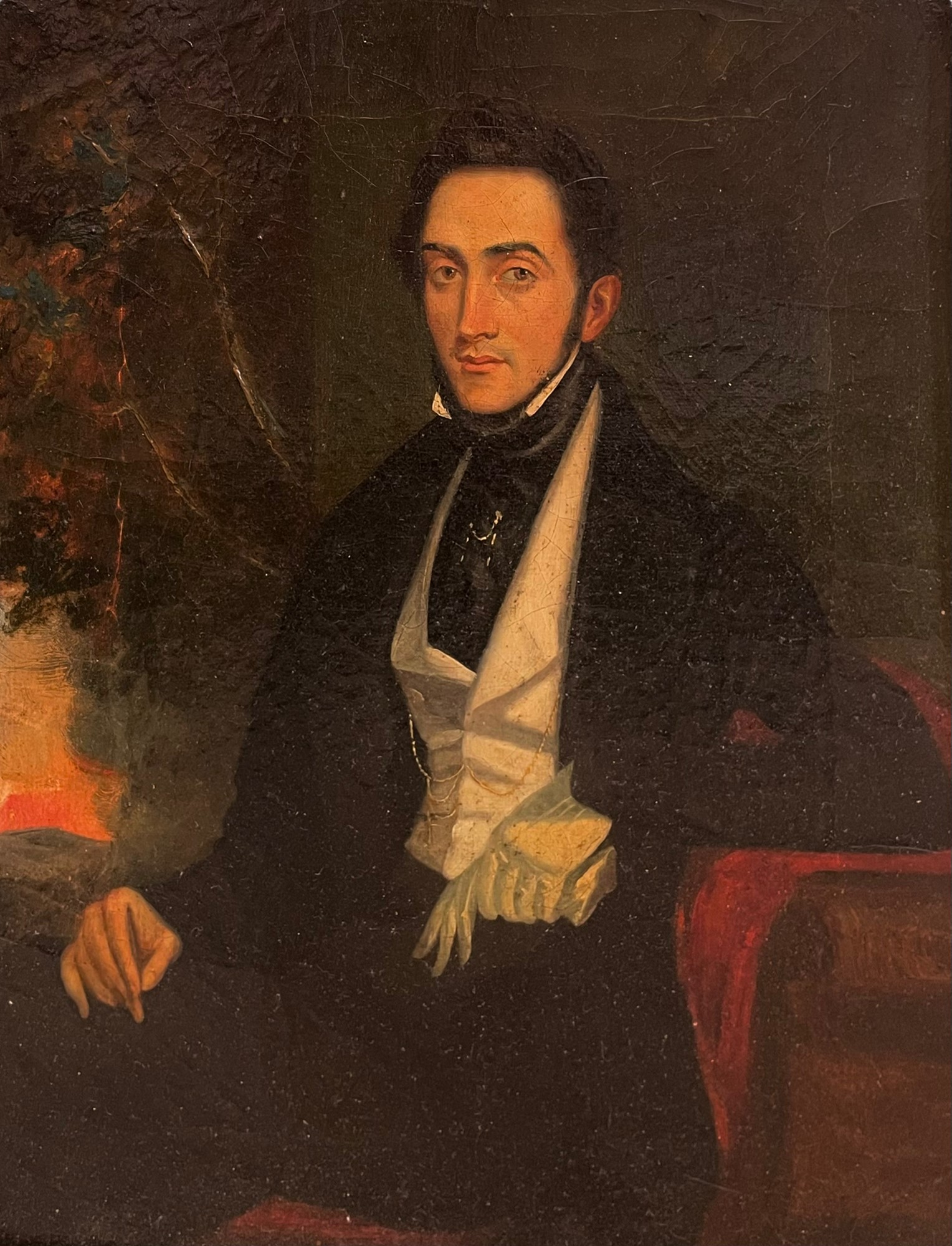 Anonimo del XIX secolo - Ritratto di Gentiluomo con guanti seconda metà del XIX secolo olio su tela cm 33 x 26