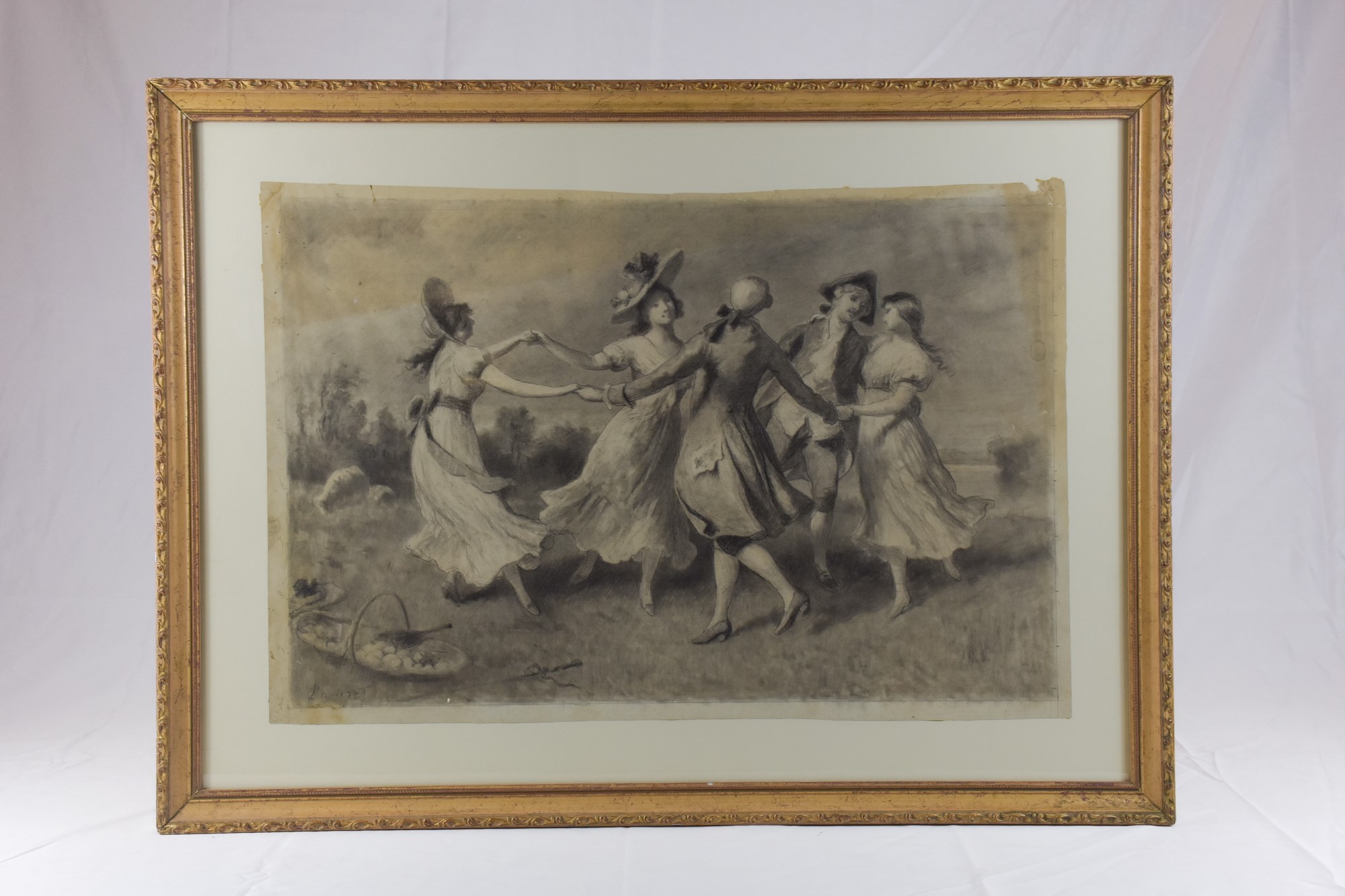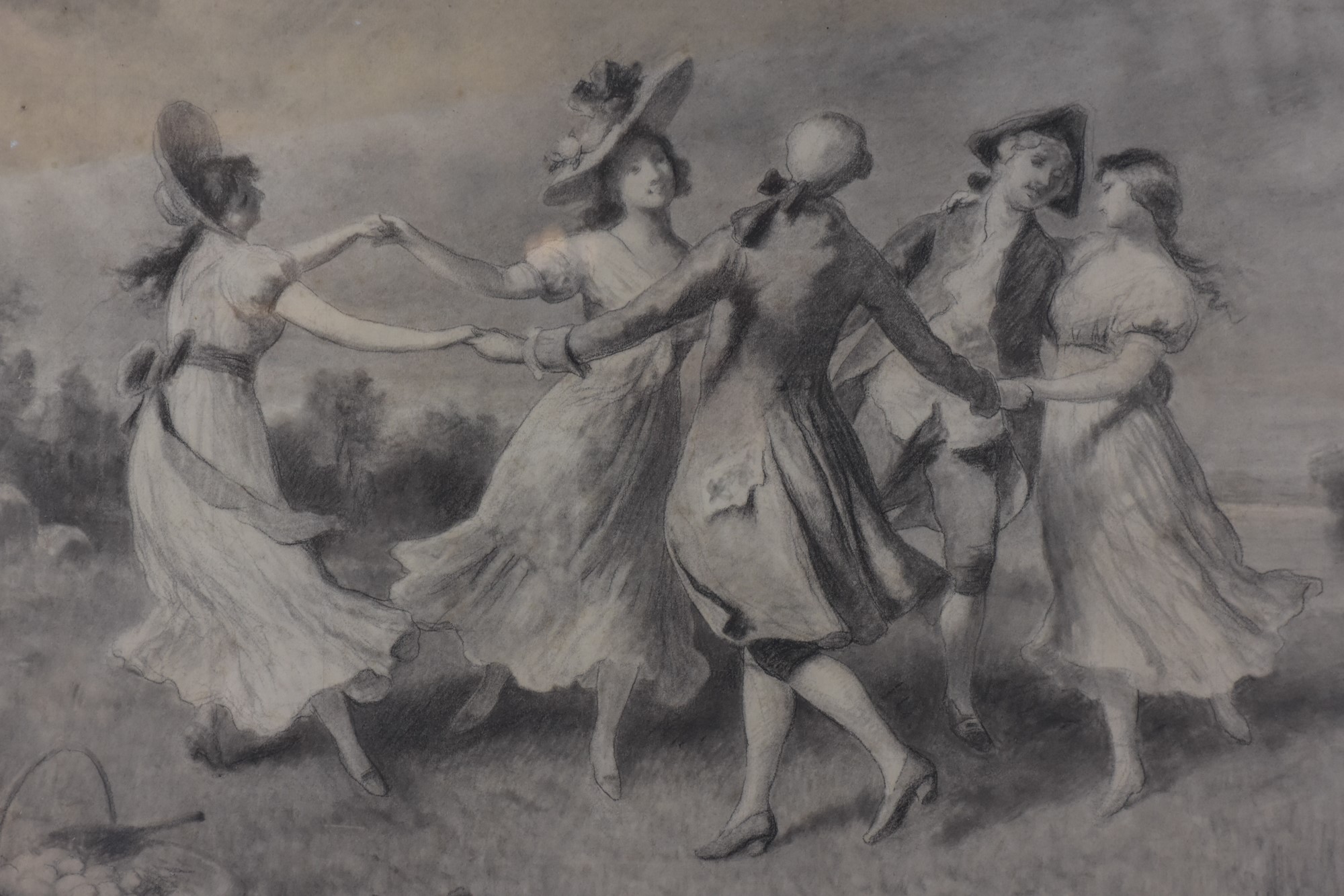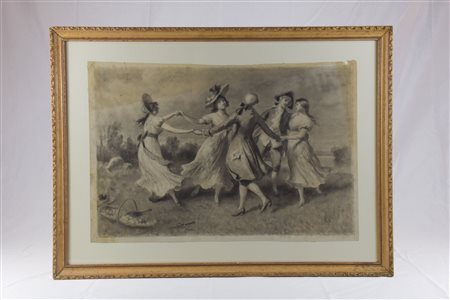 Ballo campestre Pittore francese del XIX secolo carboncino su carta quadrettata 39,5 x 58 cm