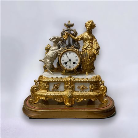 in antimonio, con quadrante a numeri romani. Su base in legno.