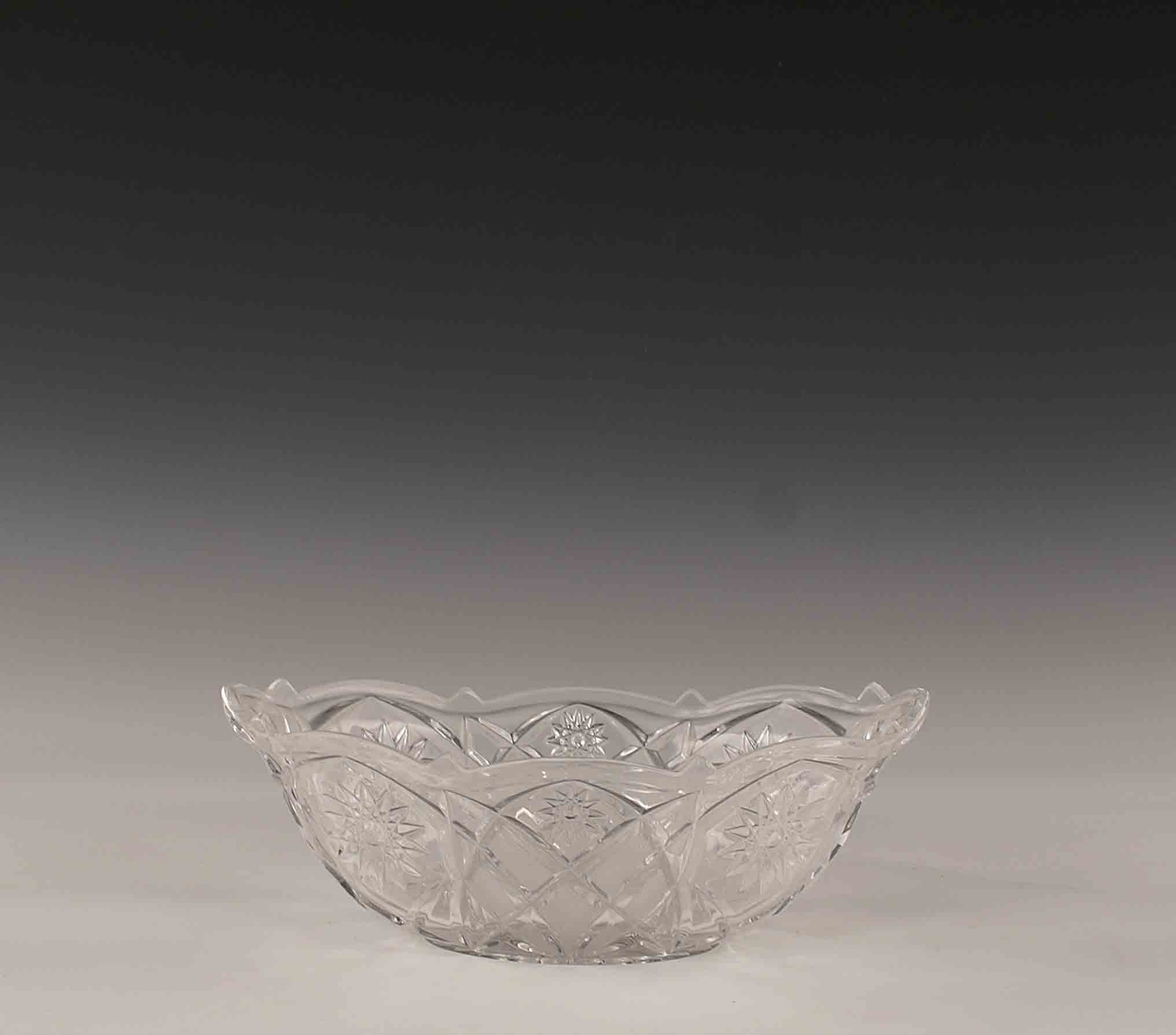 Centrotavola di forma ovale in cristallo molato, vecchia manifattura, cm....