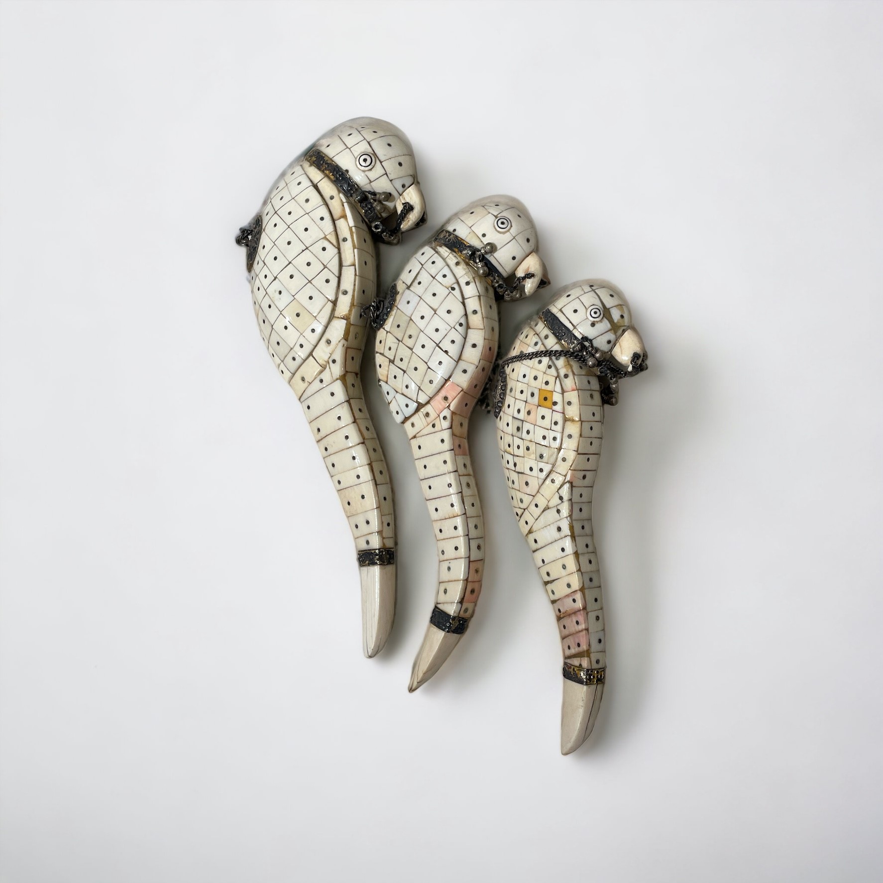Set di tre pappagalli Prima metà XX secolo h 22 cm (massima)