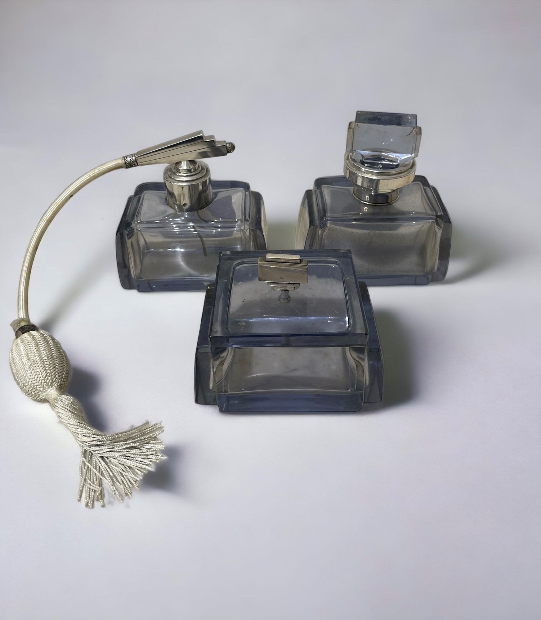 Lotto 417 | Due flaconi e un vaporizzatore seconda metà Novecento massime 8 x 12 cm