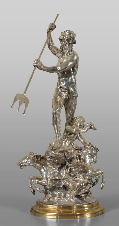 Eugenio Avolio (1876-1929) 'Nettuno' scultura in argento con base in bronzo f.to