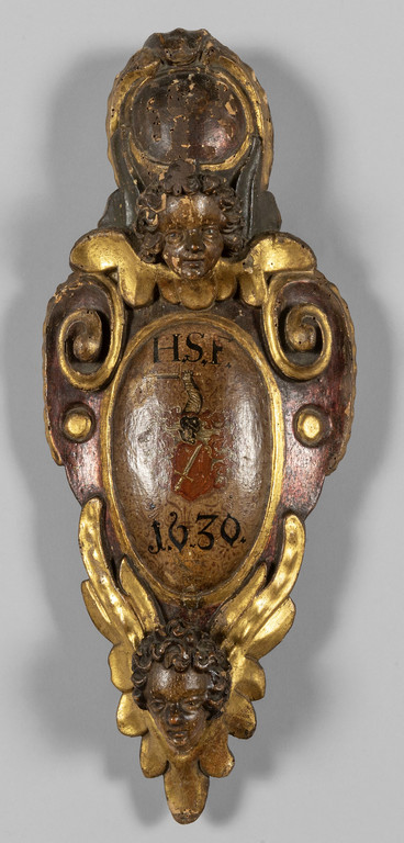 Stemma in legno policromo e dorato datato 1630 Lombardia sec.XVII
