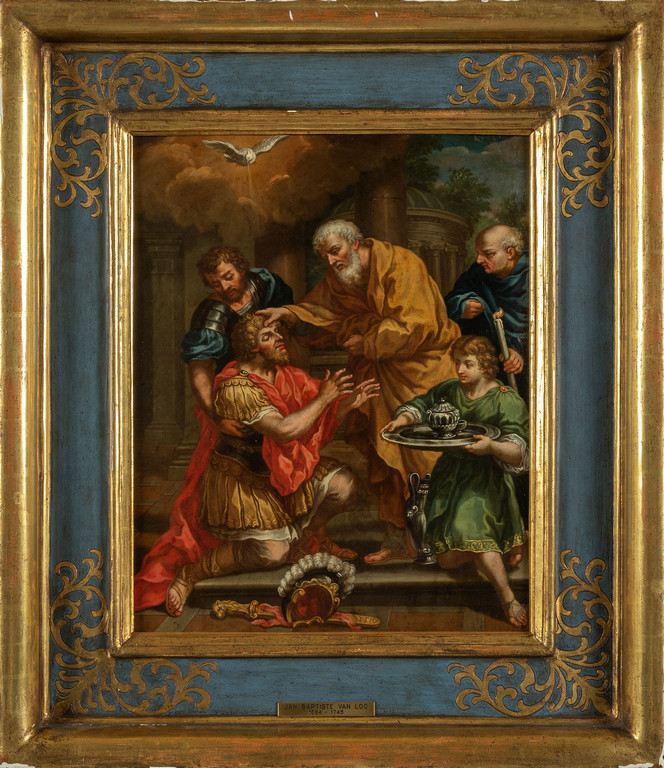 Scuola fiamminga sec.XVIII 'Guarigione e Battesimo di San Paolo' olio su rame