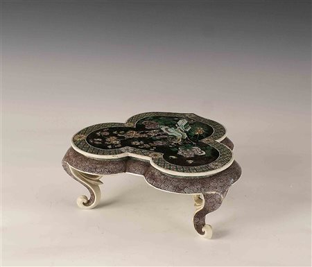 Alzata in ceramica smaltata e dipinta a policromia, Giappone, XIX secolo, h....