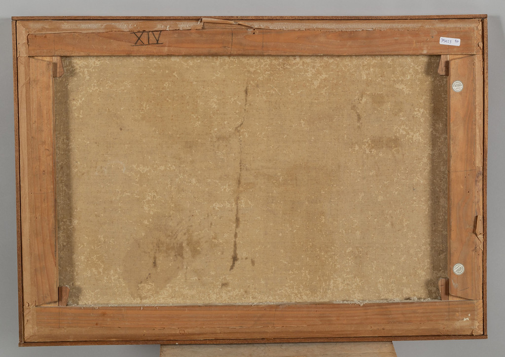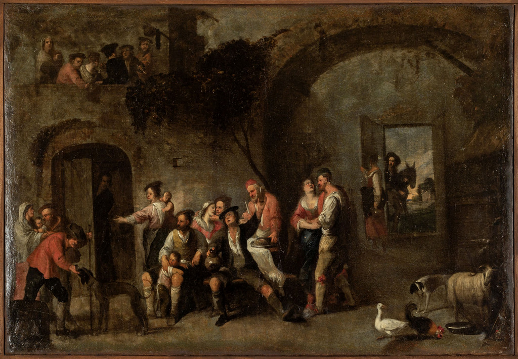 'Fuori dall'osteria' olio nel retro bollino Antichità Montarsolo Genova