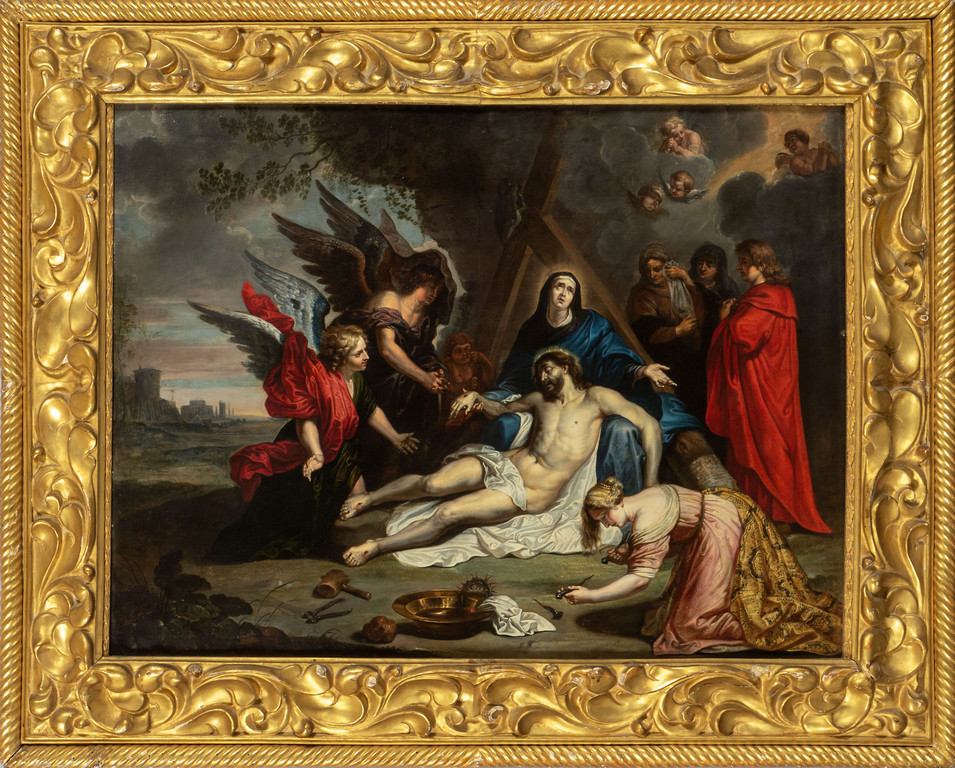 Scuola fiamminga sec.XVIII 'Deposizione' olio su rame