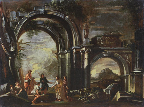 Rovine architettoniche con predica di san Paolo ad un gruppo di pescatori e pastori