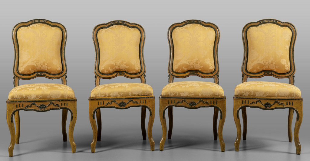 Sei sedie Luigi XV in legno intagliato e laccato Lombardia sec.XVIII