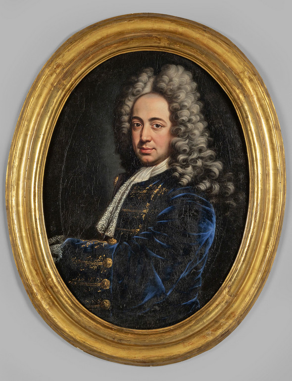 Scuola genovese sec.XVIII (G.B.Delle Piane) 'Ritratto di Agostino Spinola' olio di forma ovale cornice coeva