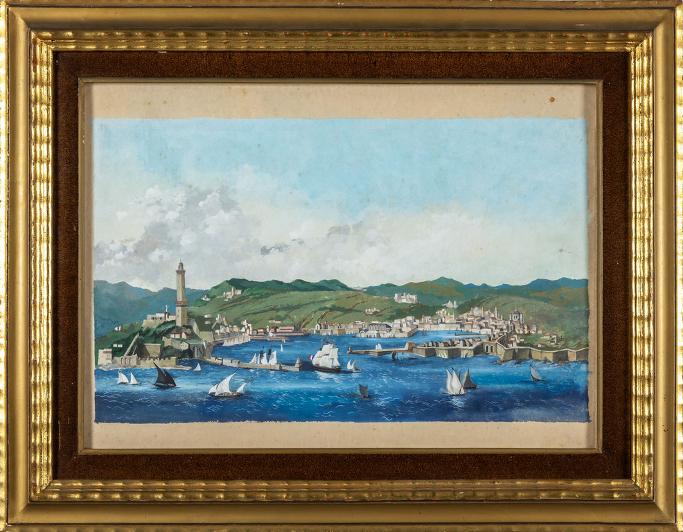'Il porto di Genova con la Lanterna' tempera sec.XIX