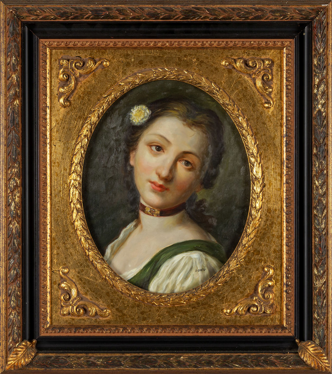 D.Goez 'Fanciulla' olio su tavoletta di forma ovale