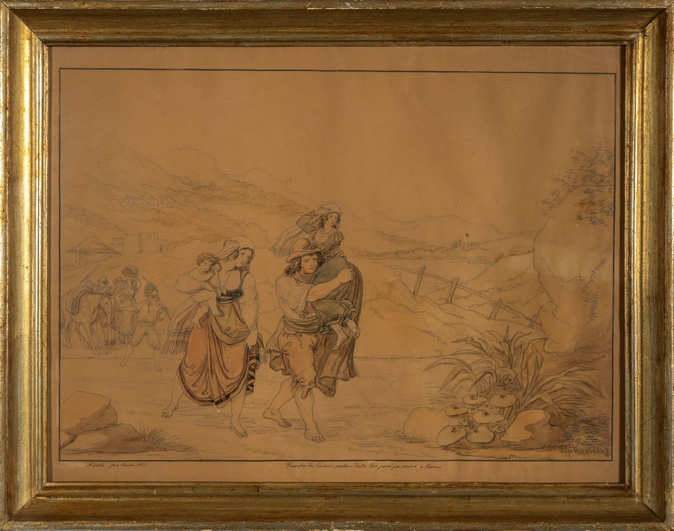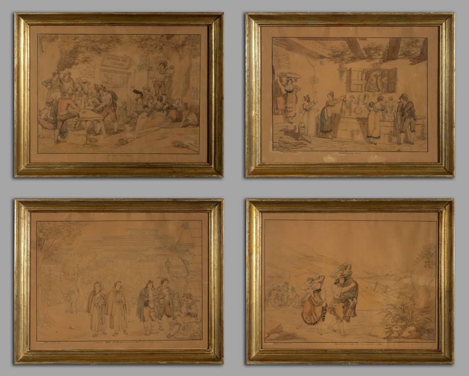 'Scene di vita romana' quattro grandi disegni colorati f.ti e d.ti 1832 e 1833