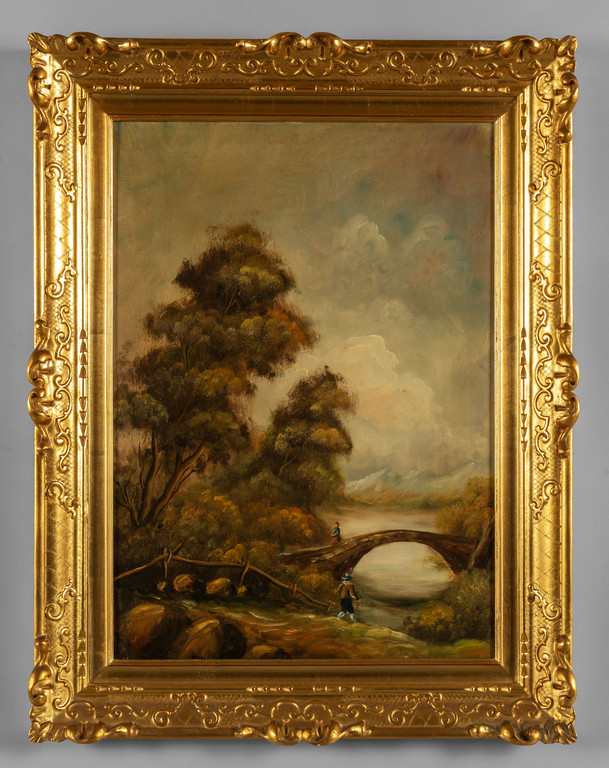 'Paesaggio con ponte' olio su tela f.to in b.a s.