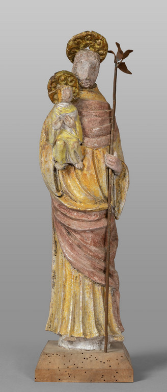 San Giuseppe ed il Bambino gruppo in ceramica policroma f.to alla base rotture nel collo e nelle aureole