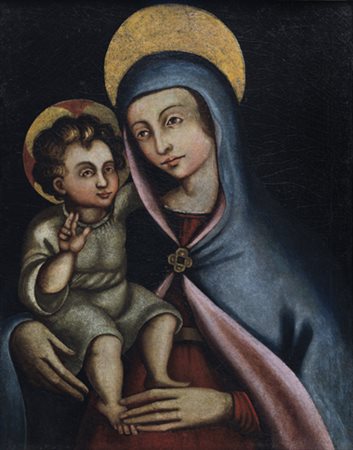PITTORE DEL XVIII SECOLO Madonna con BambinoOlio su tela, cm 63x49,5.