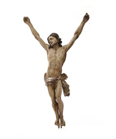 SCULTORE DEL XIX SECOLO CrocefissoLegno scolpito e dipinto, cm 56x32;...