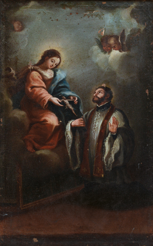 PITTORE DEL XVIII SECOLO Vergine e santoOlio su tela, cm 58x34,5; alcune...