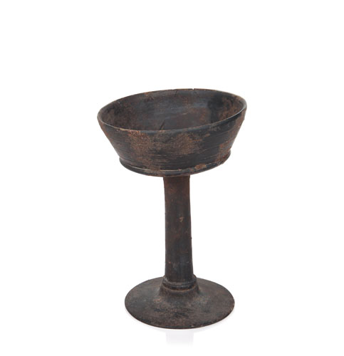 CALICE IN BUCCHERO NERO, ETRURIA, VII SECOLO A.C. a coppa su alto piede a tromba, decori a scanalature orizzontali; rincollature.
