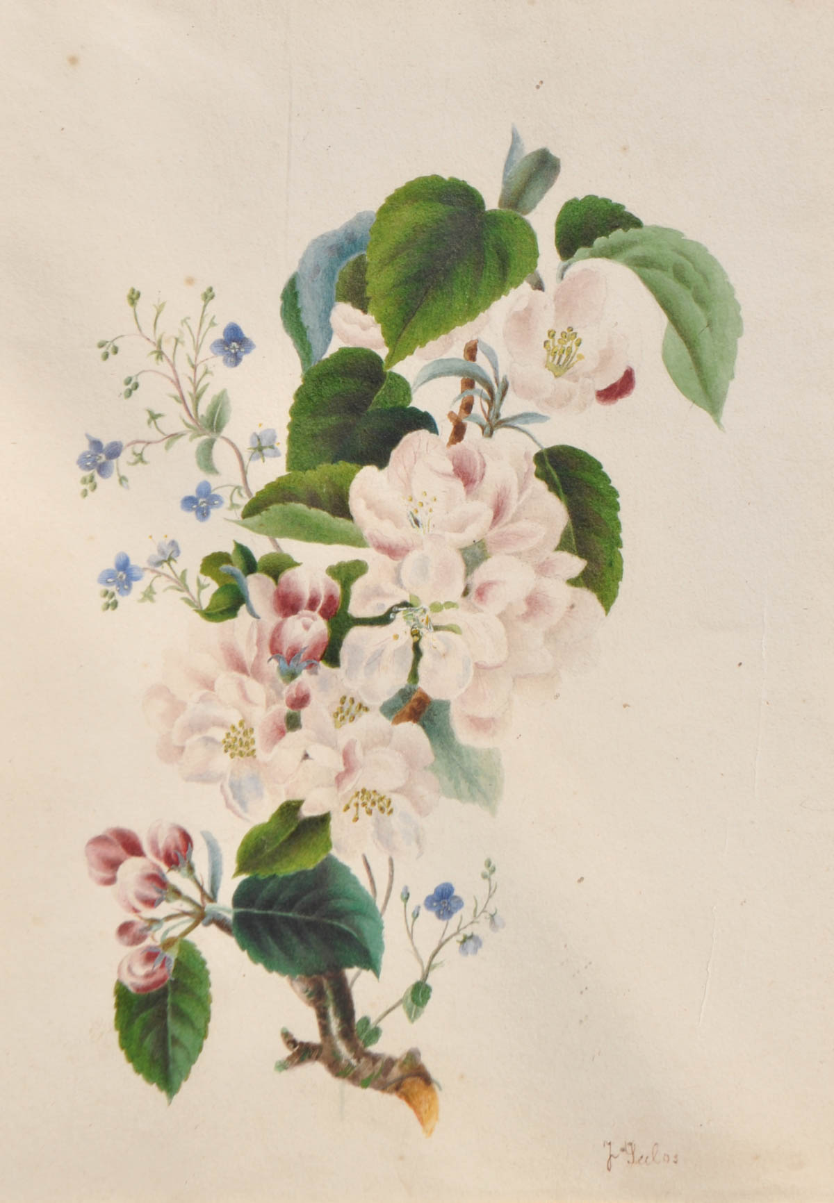 Ignaz Seelos (Bozen/Bolzano 1827 - Wien/Vienna 1902) Ramo di melo in fiore;Acquerello, 33,5 x 24 cm