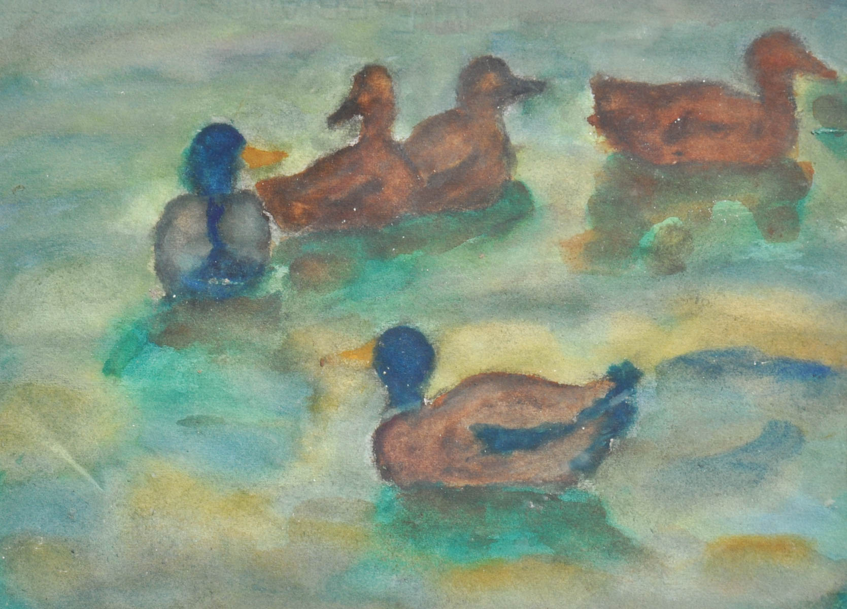 Max Sparer (Söll, Tramin/Sella, Termeno 1886 - Bozen/Bolzano 1968) Cinque anatre nel lago;Acquerello, 20,5 x 28,5 cm, in cornice