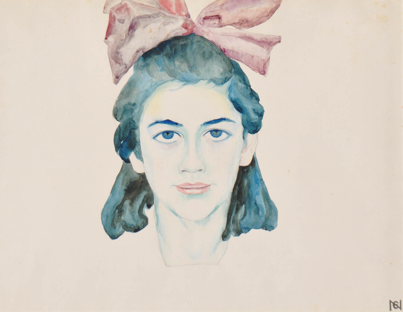 Ernst Nepo (Dauba, Böhmen/Boemia 1895 - Innsbruck 1971) Ragazza con fiocco lila, 1921;Acquerello, 35 x 45,5 cm (entro il passepartout), in cornice